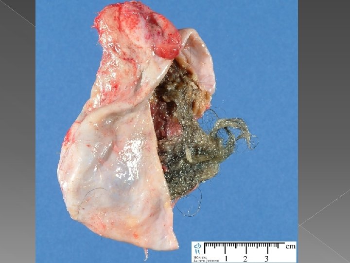 Case 2 A 12 y old girl RLQ Abdominal pain Palpable Mass Sono: solid cystic mass