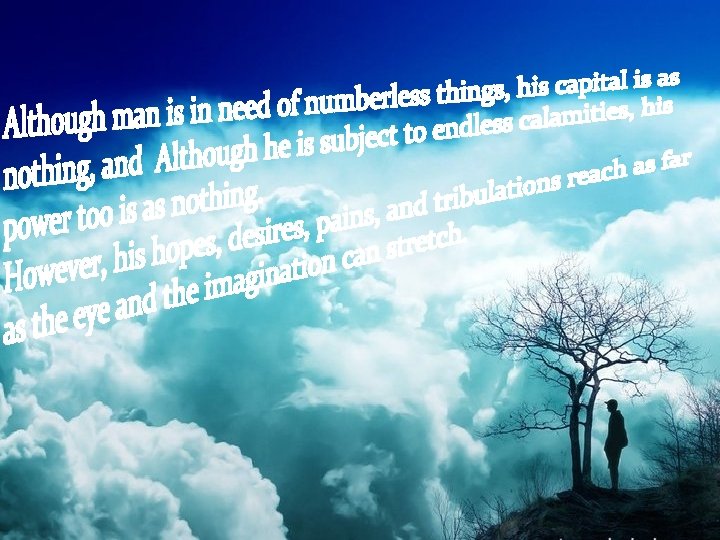 The other soldier took the left road. He left the army and did not want to conform to the orders. He was released from bearing a heavy load. But his heart was suffered from anxieties and innumerable fears before every object and every event. When He reached any city, he was punished as a rebellious and escapee.