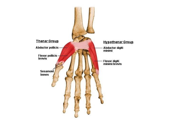 In The Name of God Thenar Intrinsic muscles Slides: 53 Download presentation In The Name of God Thenar Intrinsic muscles Hypothenar central Thenar Intrinsic muscles Hypothenar central 1)Abductor pollicis brevis 2)Flexor pollicis brevis Thenar 3)Opponens pollicis 4)Adductor pollicis 1)Abductor pollicis brevis 2)Flexor pollicis brevis Thenar 3)Opponens pollicis 4)Adductor pollicis 1)Abductor pollicis brevis 2)Flexor pollicis brevis Thenar 3)Opponens pollicis 4)Adductor pollicis 1)Abductor pollicis brevis 2)Flexor pollicis brevis Thenar 3)Opponens pollicis 4)Adductor pollicis Thenar Intrinsic muscles Hypothenar central 1)Palmaris brevis 2)Abductor digiti minimi hypothenar 3)Flexor digiti minimi brevis 4)Opponens digiti minimi 1)Palmaris brevis 2)Abductor digiti minimi hypothenar 3)Flexor digiti minimi brevis 4)Opponens digiti minimi 1)Palmaris brevis 2)Abductor digiti minimi hypothenar 3)Flexor digiti minimi brevis 4)Opponens digiti minimi 1)Palmaris brevis 2)Abductor digiti minimi hypothenar 3)Flexor digiti minimi brevis 4)Opponens digiti minimi Thenar Intrinsic muscles Hypothenar central 1)Lumbrical central 2)Palmar interosseous 3)Dorsal interosseous 1)Lumbrical central 2)Palmar interosseous 3)Dorsal interosseous 1)Lumbrical central 2)Palmar interosseous 3)Dorsal interosseous