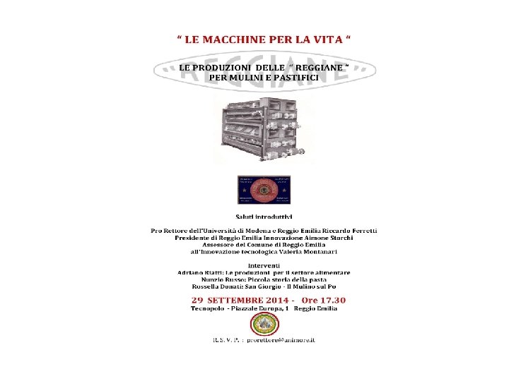 “Il Romanzo della Pasta Italiana” Tecnopolo Reggiano Università degli Studi Modena e Reggio Emilia