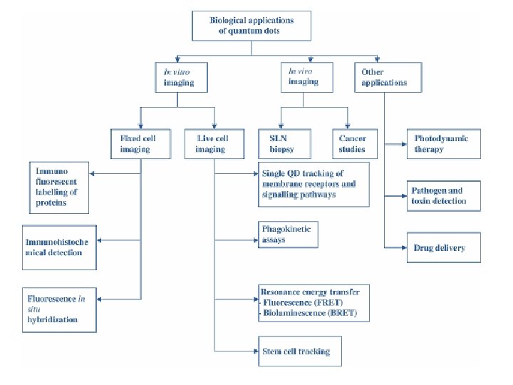 v Intracellular labelling: • Could be achieved by incubating cells with QDs via non-specific endocytosis. • They can be introduced into the cell via microinjection v Extracellular labelling: • Via membrane receptors and membrane-associated proteins are good targets for QD imaging. Various
