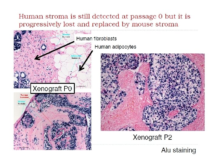 Animal Models PDX Model Gene expression is stable over time (tumor passage) BUT There are gene differences when comparing the xenograft with the patient Expression of tumor supressors is lost in 60 -70% xenografts