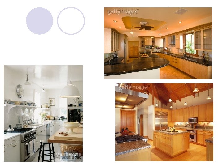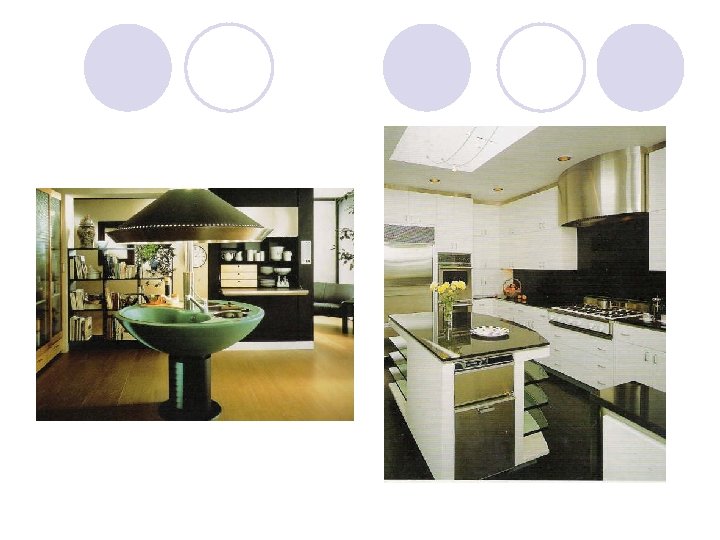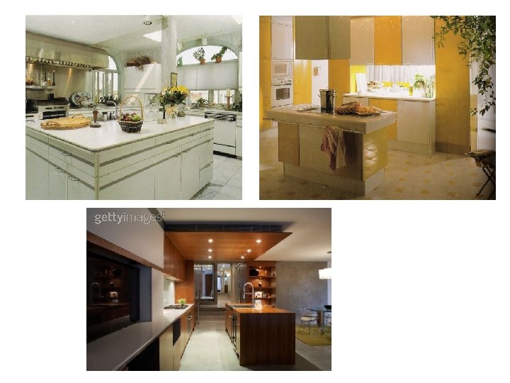 l Today most homes are designed similarly and these layouts continue to be used in today's kitchen designs. Of course if space and money is no object, any design can be achieved!