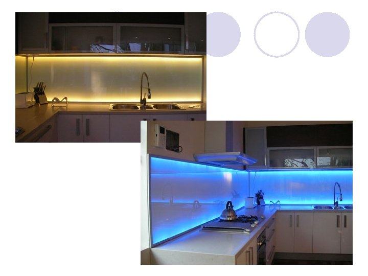 Under Cabinet Lighting as Accent Lighting l Under cabinet lighting comes with several bulb options: halogen, fluorescent and xenon, all of which are improvements over regular incandescent bulbs for energy efficiency and extended life. l Fluorescents were the first under cabinet lighting. They continue to be a strong seller, with their reliability and energy efficiency. Lowvoltage, halogen bulbs produce a very bright, white light which closely mimics sunlight. Xenon, another low-voltage option, runs at a cooler temperature which may be preferred in some instances. l Under cabinet lights can be set up to switch on automatically with overhead lights, or turn on independently. Installing dimmers can also create a warm ambiance when overhead lights are off.