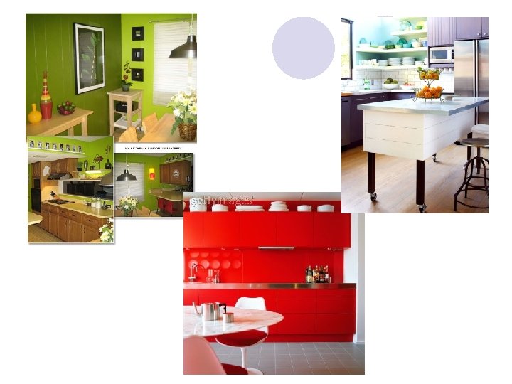 Kitchen Colors l Colors can dramatically affect the overall look of your project. l l l Small kitchens - Try using cool colors. These colors will actually make your space look larger where warm colors will make your space seem smaller! Make you ceiling seem taller by painting it a cooler color than the walls! Large kitchens - Any color could work however really intense colors can look amazing in a large space with appropriate contrasting colors. Warm colors will also help the space feel closer together. Glossy - These colors and surfaces will reflect light making the color more intense. Matte - These colors and surfaces will absorb light making the color seem flat or pale. One of the most important decisions you will make in the design process is the appearance of your cabinets. They are the focal point for all kitchens so if you choose a color palette that deviates too far from your cabinetry, you will definitely experience trouble matching your countertops, appliances, back splashes and flooring. Of course a perfect match is not necessary but any great renovation is built upon a strong foundation of color and compatibility. Remember that any color you choose will be very affected by the lighting in your space.