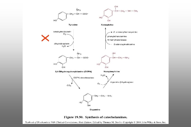 Voet Biochemistry 3 e Page 1002 © 2004 John Wiley & Sons, Inc. No or less tyrosine Melanin No or less melanin Light skin in PKU patients Melanin biosynthesis from tyrosine