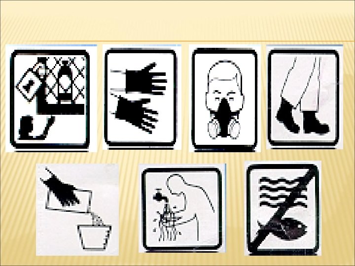 V. NORMAS DE SEGURIDAD E HIGIENE OCUPACIONAL PARA EL USO Y MANEJO DE SUSTANCIAS QUÍMICAS V. C. Bibliografía o Etiqueta. Los fabricantes de reactivos químicos y en general de sustancias peligrosas, como los plaguicidas, por ley, deben colocar esta información en las etiquetas de sus productos, expresada mediante símbolos, colores y textos en los que se alerte sobre los riesgos y recomendaciones para un uso seguro. En el caso de reactivos químicos se utilizan frases de riesgo y frases de seguridad. Las siguientes figura ilustra algunas etiquetas usadas para sustancias plaguicidas.