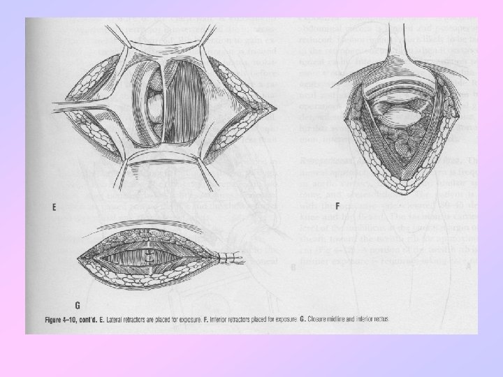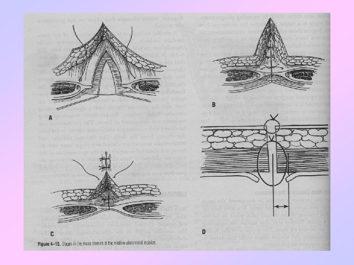 • • Closure peritonem Closure fasia Closure subcutaneous Closure skin