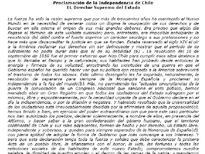 Proclamación de la Independencia de Chile EL Director Supremo del Estado