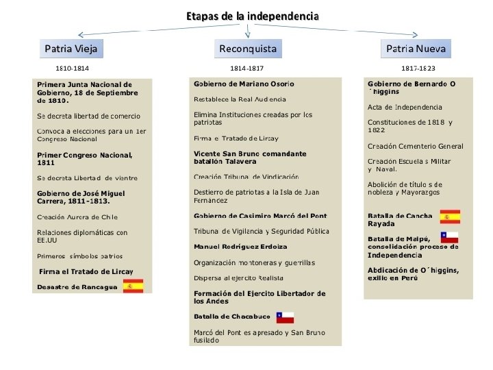 Independencia de Chile Colonia Patria Vieja 1810 Patria Nueva Reconquista 1814 1817 1823