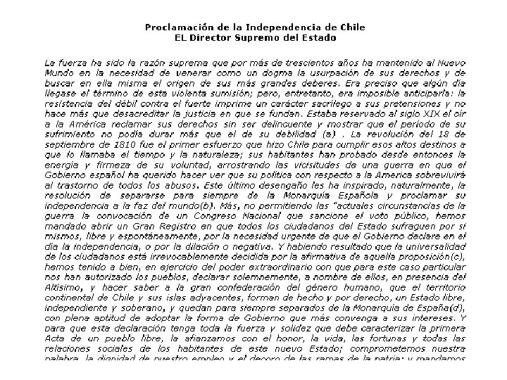 Proclamación de la Independencia de Chile EL Director Supremo del Estado