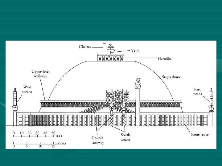 Indian Art • • Great Stupa 3 rd century BCE Sanchi, India The stupa is the central symbol of the Buddhist faith ( a temple) • These stupa contain relics of the Buddha • 60 ft in diameter and 25 ft high