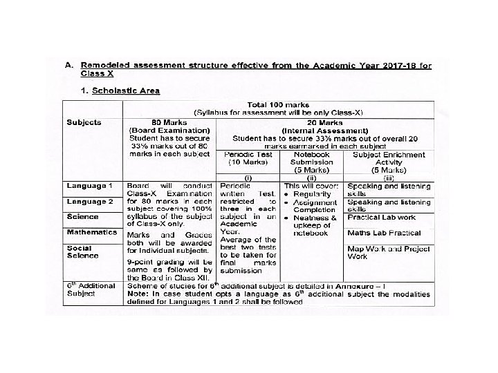 Grading System for Scholastic Areas Marks Range Grade 91 -100 81 -90 A 1 A 2 71 -80 61 -70 51 -60 41 -50 33 -40 32 & below B 1 B 2 C 1 C 2 D E (Failed )
