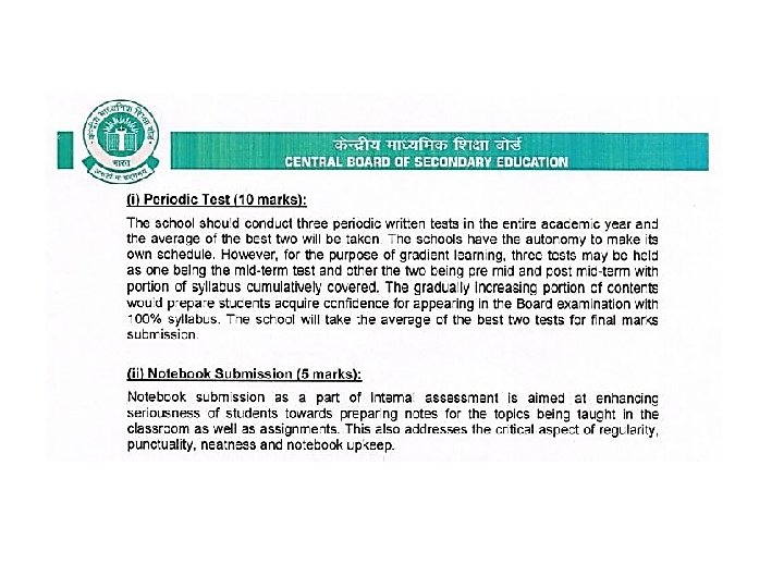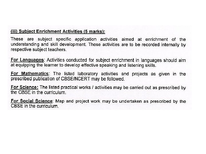 INTERNAL ASSESSMENT (20%) INTERNAL EVALUATION 10% of Periodic Test marks Notebook Submission (5%) (Regularity, Punctuality, Neatness & Notebook upkeep) Subject Enrichment Activities (5%) Language 1 English Language 2 Hindi/French/Malaya lam Science Mathematics Speaking & Listening Skills Practical Lab Work Math Lab Practical Map Work &