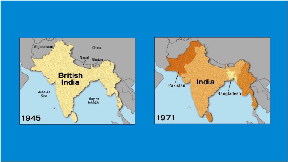 More Problems • Even though India had won its independence, things were not peaceful in the country. • Hindus and Muslims could not reach a solution as to how to rule an independent India. • Eventually, the country was split into India for the Hindus and East & West Pakistan for the Muslims. • The partition of India led to genocide. • Hundreds of thousands of people were killed in widespread violence.
