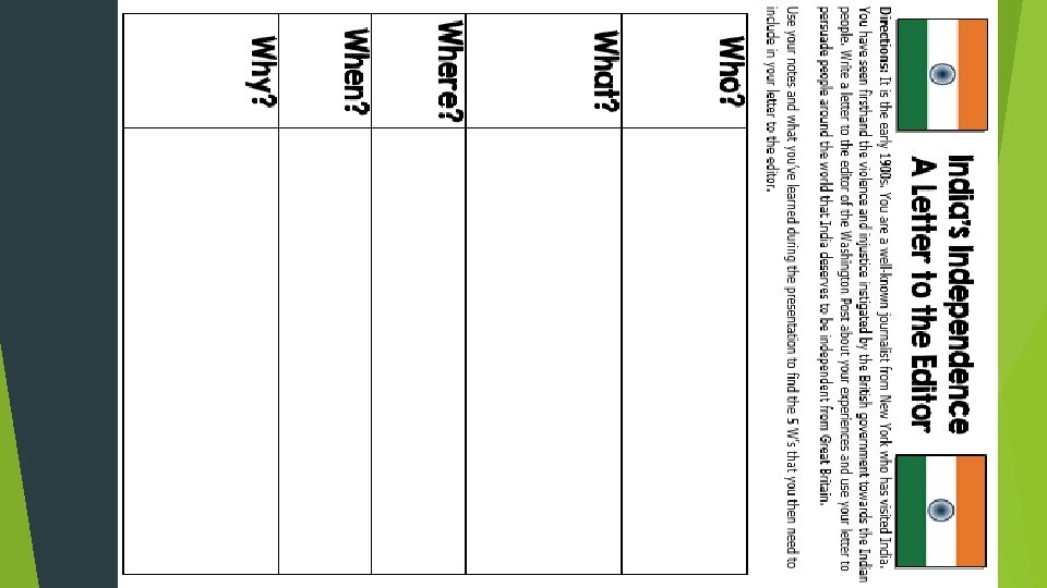 Quick Quotation Response Directions: After discussing the quotation with your group, spend a few minutes writing a response to the quote. *Some Ideas: What does the quotation mean? , Do you agree or disagree with Gandhi’s statement? , Do you think the quotation important? , etc.