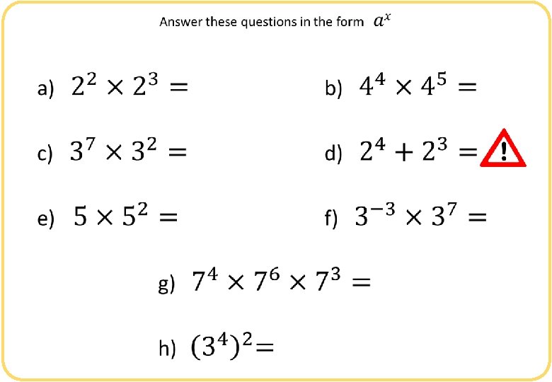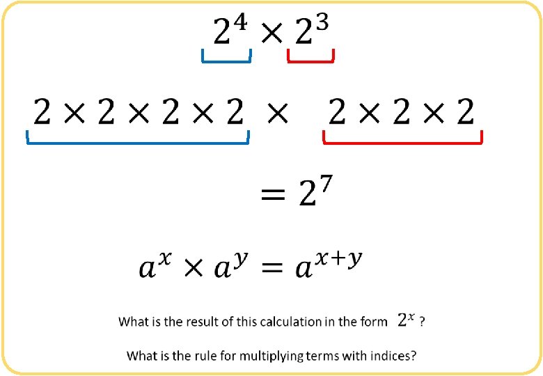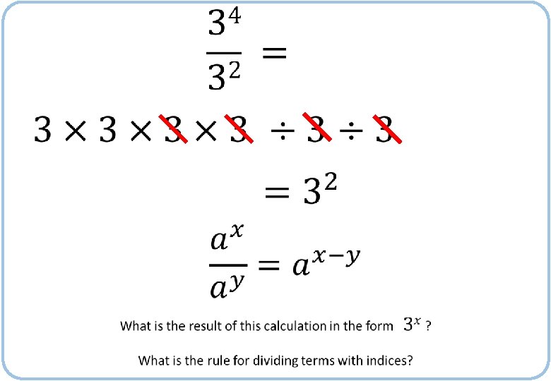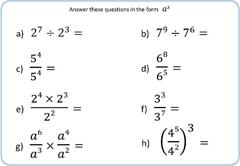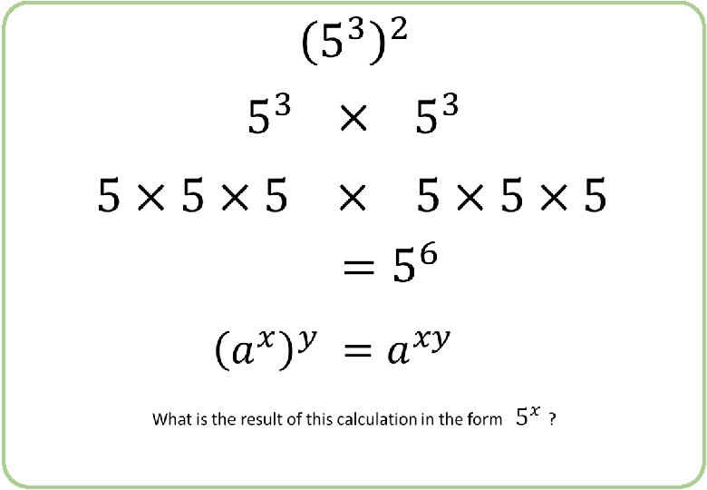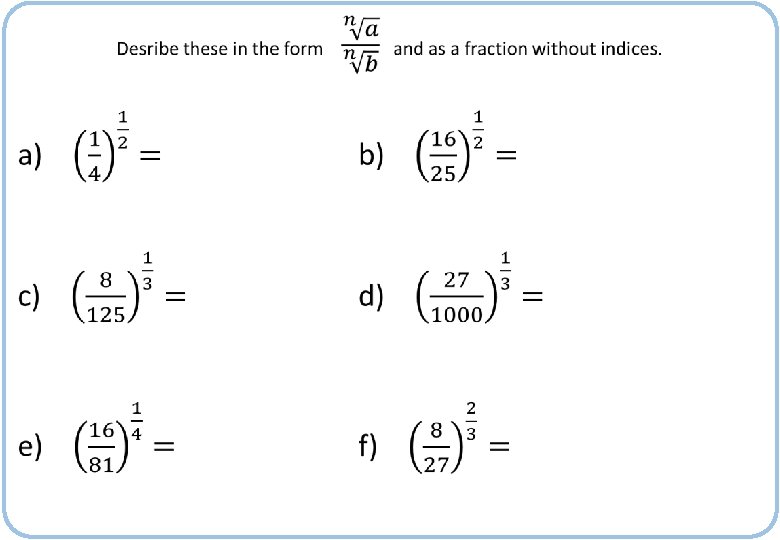 Indices – Mixed – Demonstration This resource provides animated demonstrations of the mathematical method. Check animations and delete slides not needed for your class.
