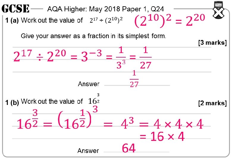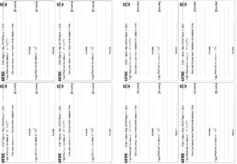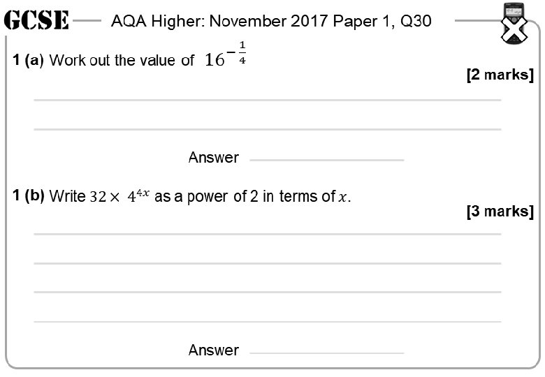 Indices – Mixed – Higher – GCSE Questions – AQA These questions are the same format as previous GCSE exams. COPY means they use the exact same numbers as the original GCSE question. Otherwise, they are clone questions using different numbers. The worksheets are provided in 2 sizes.