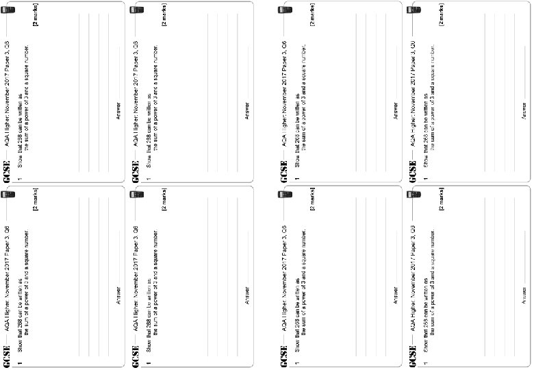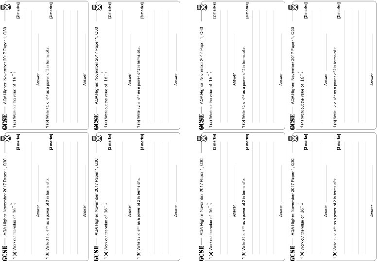 AQA Higher: November 2017 Paper 1, Q 30 1 (a) AQA Higher: November 2017 Paper 1, Q 30 [2 marks] 1 (a) Answer 1 (b) Answer [3 marks] 1 (b) Answer AQA Higher: November 2017 Paper 1, Q 30 [2 marks] 1 (a) Answer 1 (b) [2 marks] Answer [3 marks] Answer AQA Higher: November 2017 Paper 1, Q 30 1 (a) [2 marks] 1 (b) [3 marks] Answer