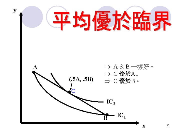 y 例子: Cobb-Douglas 偏好方向 IC 2 IC 1 x 39