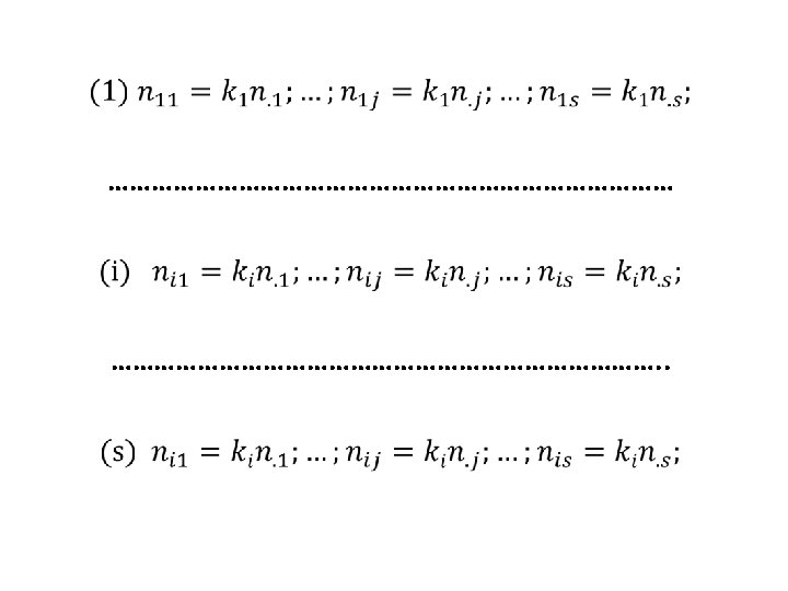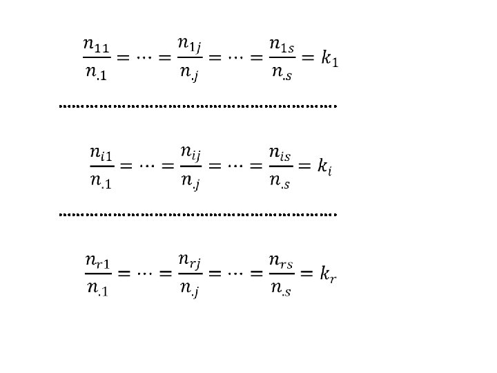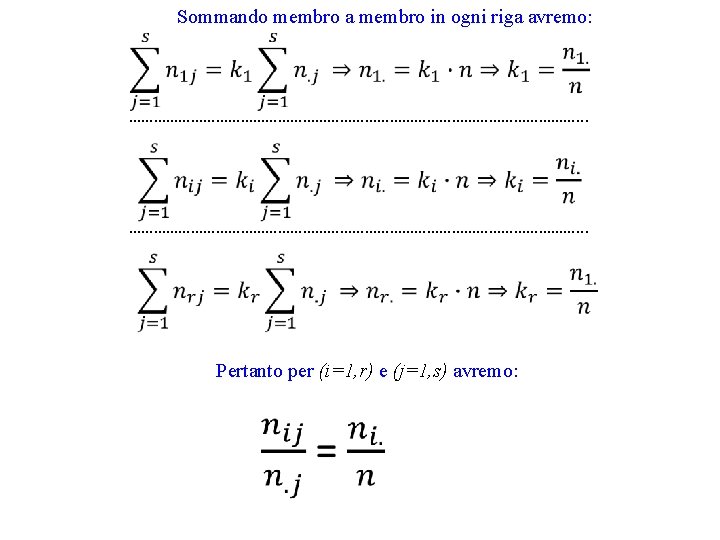 Dimostrazione: dalla (1) avremo che: ni 1 / n. 1 =. . . = nij / n. j =. . . = nis / n. s = ki cioè: ni 1 = n. 1 ki; …. ; nij = n. j ki; …. ; nis = n. s ki sommando membro avremo che: cioè per (i=1, . . , r) ovvero: ki = ni. / n per (i=1, . . , r), che dimostra la (2). 15
