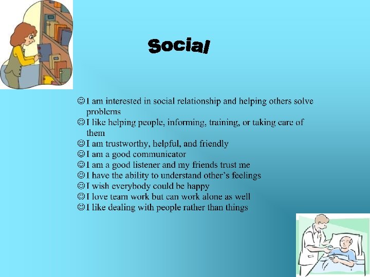 I like to help and take care of others. I like to be with lots of friends. It is easy for me to get to know new people I got ability to understand other’s feelings. I am trustworthy, helpful, friendly. I wish everybody can be happy I am a good communicator TOTAL