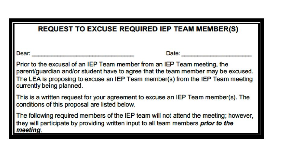 Request to Excuse Required IEP Team Members
