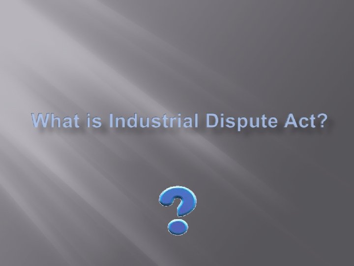 Definition Sections and Subsections Types of Industrial Dispute Act. Causes of Industrial Dispute Act. Authorities Under the Act. Strike Lock-out