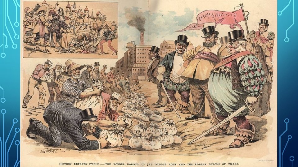 BIG BUSINESS LEADS TO… Rich entrepreneurs: Robber barons or captains of industry? Sherman Anti-Trust Act passed in 1890 • Laissez-faire dominates the early and mid 1800 s • But government begins to grow weary of the power of big business and starts to regulate monopolies • Law makes trusts and monopolies illegal • Hard to enforce and ineffective