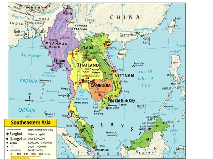 Colonialism in Southeast Asia • British purchased Singapore and build a harbor, becoming one of the busiest ports in the world • Malaysia became huge exporter for tin and rubber • British encouraged immigrants to move to Southeast Asia to work on plantation