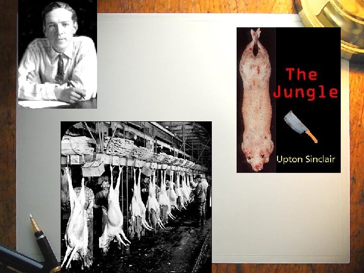 Upton Sinclair • The book “The Jungle” exposes the unhealthy and unsafe conditions in Chicago's Meat Packing industry. • Roosevelt reads book and go to Chicago.