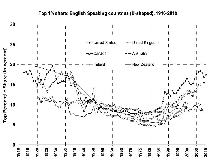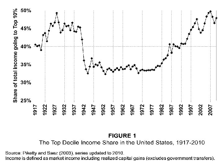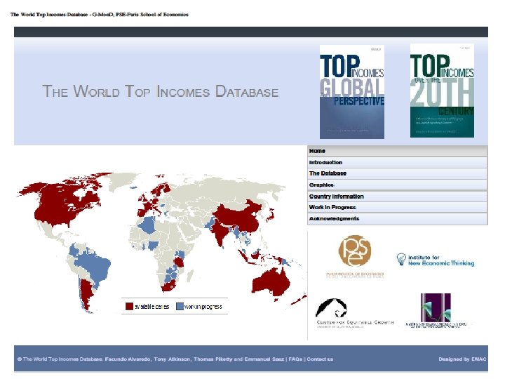 The Continuing Rise of Top Income Shares • World top incomes database: 25 countries, annual series over most of 20 C, largest historical data set • Two main findings: - The fall of rentiers: inequality ↓ during first half of 20 C = top capital incomes hit by 1914 -1945 capital shocks; did not fully recover so far (long lasting shock + progressive taxation) → without war-induced economic & political shock, there would have been no long run decline of inequality; nothing to do with a Kuznets-type spontaneous process - The rise of working rich: inequality ↑ since 1970 s; mostly due to top labor incomes, which rose to unprecedented levels; top wealth & capital incomes also recovering, though less fast; top shares ↓ ’ 08 -09, but ↑ ’ 10; Great Recession is unlikely to reverse the long run trend → what happened?