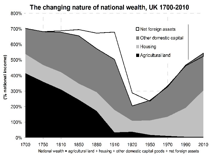 …Despite Considerable Changes in the Nature of Wealth: UK, 1700 -2010 800% Agricultural land 700% Housing Other domestic capital 600% (% national income) Net foreign assets 500% 400% 300% 200% 100% 0% 1700 1750 1810 1850 1880 1910 1920 1950 1970 1990 National wealth = agricultural land + housing + other domestic capital goods + net foreign assets 2010