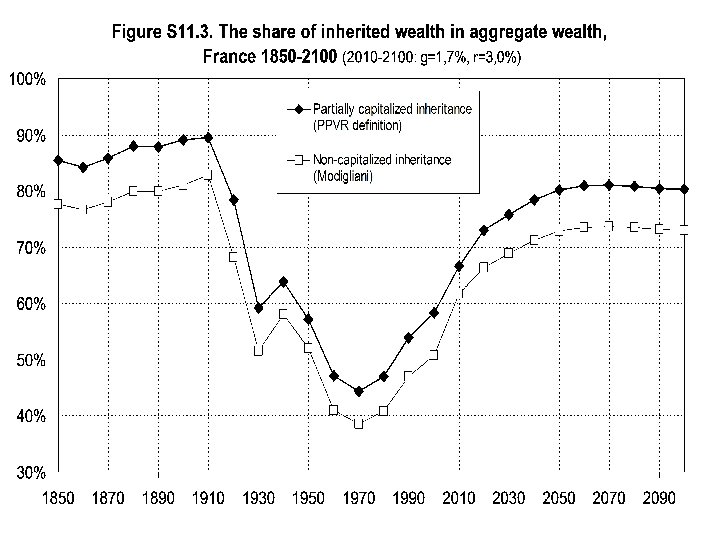 • Question: Does inheritance belong to the past? Did modern growth kill the inheritance channel? E. g. due to the natural rise of human capital and meritocracy? Or due to the rise of life expectancy? • I will answer « NO » to this question: I find that inherited wealth will probably play as big a role in 21 C capitalism as it did in 19 C capitalism • Key mechanism if low growth g and r > g