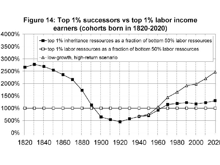 Back to distributional analysis: macro ratios determine who is the dominant social class • 19 C: top successors dominate top labor earners → rentier society (Balzac, Jane Austen, etc. ) • For cohorts born in 1910 s-1950 s, inheritance did not matter too much → labor-based, meritocratic society • But for cohorts born in the 1970 s-1980 s & after, inheritance matters a lot → 21 c class structure will be intermediate between 19 c rentier society than to 20 c meritocratic society – and possibly closer to the former (more unequal in some dimens. , less in others) • The rise of human capital & meritocracy was an illusion. . especially with a labor-based tax system