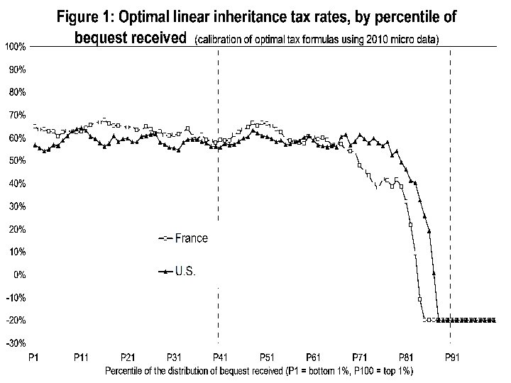 Example 2: τ=30%, α=30%, sbo=10%, by=15% • If e. B=0, then τB=67% & τL=29% • If e. B=0. 2, then τB=56% & τL=31% • If e. B=0. 5, then τB=46% & τL=33% • If e. B=1, then τB=35% & τL=35% → behavioral responses matter but not hugely as long as the elasticity e. B is reasonnable Kopczuk-Slemrod 2001: e. B=0. 2 (US) (French experiments with zero-children savers: e. B=0. 1 -0. 2)
