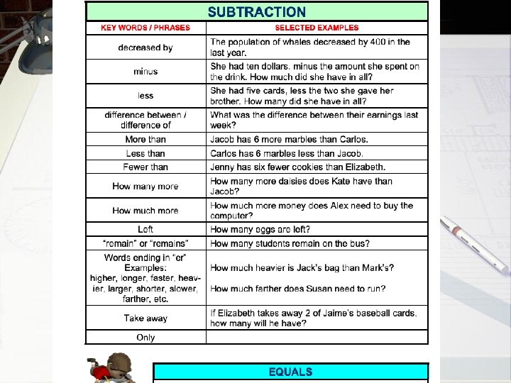 Word Problem Example • How much wood does it take to build a rectangular box measuring 2 m by 4 m by 6 m? • Front: 2 x 6 = 12 6 m • Back: 2 x 6 = 12 • Top: 6 x 4 = 24 2 m 4 m • Bottom: 6 x 4 = 24 • Left: 2 x 4=8 Add up the sides • Right: 2 x 4 = 8 to get 88 m 2