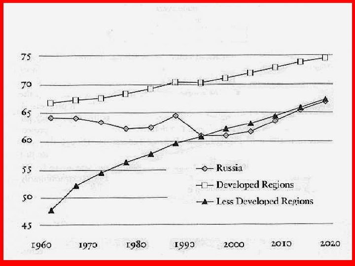 Such projections, even if tentative, are significant indicators of future earning capacity and productivity in nations. Life expectancy is strongly associated with income and for Russia, it is a good predictor of productivity and per capita GNP.