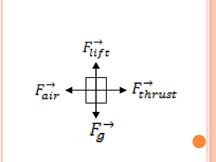 EXAMPLE: A 12 passenger jet aircraft of mass 1. 6 x 104 kg is travelling at a constant velocity of 850 km/h [E] while maintain a constant altitude. Besides gravity and air resistance, the aircraft also experiences an upward force called “lift” and a forward force of the engines called “thrust. ” Draw an FBD of the aircraft, and state the net force acting on the aircraft.