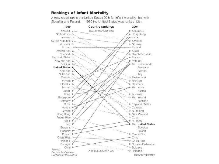 Infant Mortality • Infant mortality is defined as the probability of dying between birth and one year of age – Reported as rate per 1000 live births • US ranks 31 st in the world for infant mortality – Ranking of US has decreased in past decades • 2012 report by Congressional Research Service provides an overview of factors associated with infant mortality rates