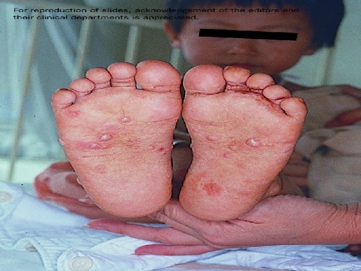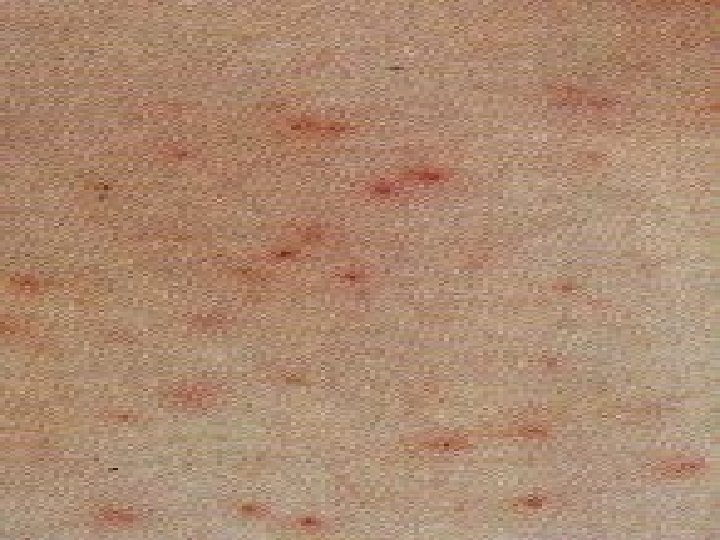 Scabies (Sarcoptes scabei mite) • Highly contagious, spread by skin to skin • Rash with varying lesions on infants and children • Diagnosis exam under microscope