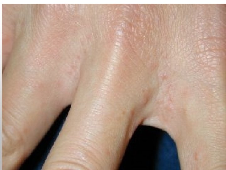 Scabies • Symptoms: severe itching (itching worse at night) • Nodules and itching persist for weeks after TX