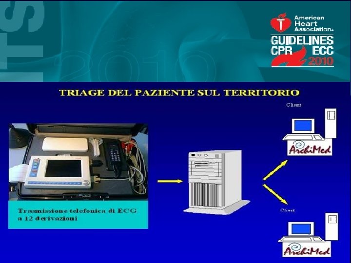 SCHEMA DECISIONALE Paziente con <2 ore dall’insorgenza dei sintomi: -preferibilmente trombolisi, anche pre-ospedaliera; -PTCA Primaria se accesso al Centro Hub < 60’ Paziente con 2 -6 ore dall’insorgenza dei sintomi: -PTCA Primaria se accesso al Centro Hub < 90’, -altrimenti trombolisi in loco; Paziente con 6 -12 ore dall’insorgenza dei sintomi o pazienti con IMA in pregresso By-Pass Aorto. Coronarico o controindicazioni alla terapia trombolitica: -PTCA primaria a prescindere dai tempi di accesso al Centro Hub.
