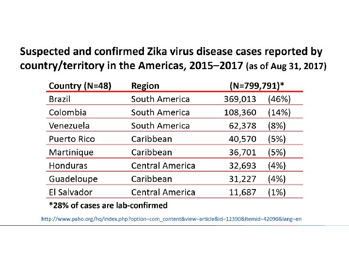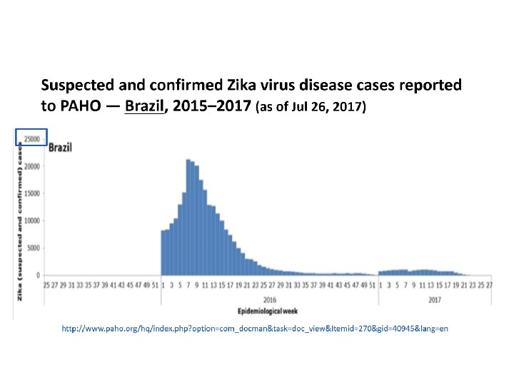 Primera vez en la historia… “Never before in history has there been a situation where a bite from a mosquito could result in a devastating malformation. ” – Dr. Tom Frieden, CDC Director Fortune, April 13, 2016 “…the last time an infectious pathogen (rubella virus) caused an epidemic of congenital defects was more than 50 years ago…” – New England Journal of Medicine, April 13, 2016