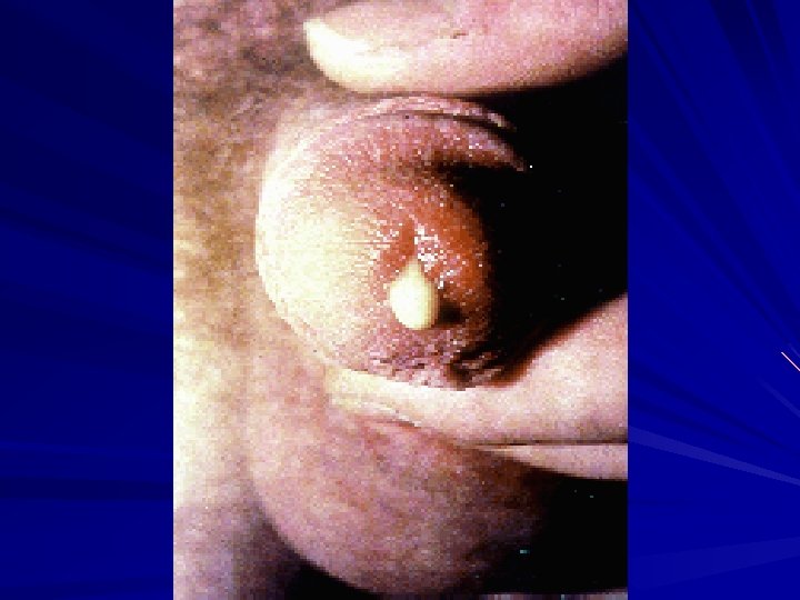 Manifestaciones Clínicas MUJER Infección genital no complicada CERVICITIS: cuello rojo con tendencia a sangrar con escasa o abundante secreción. Uretritis: menos típica que en el hombre Bartholinitis: muy inflamatoria Proctitis Faringitis- Ocular (autoinoculación)