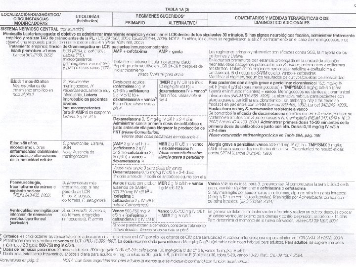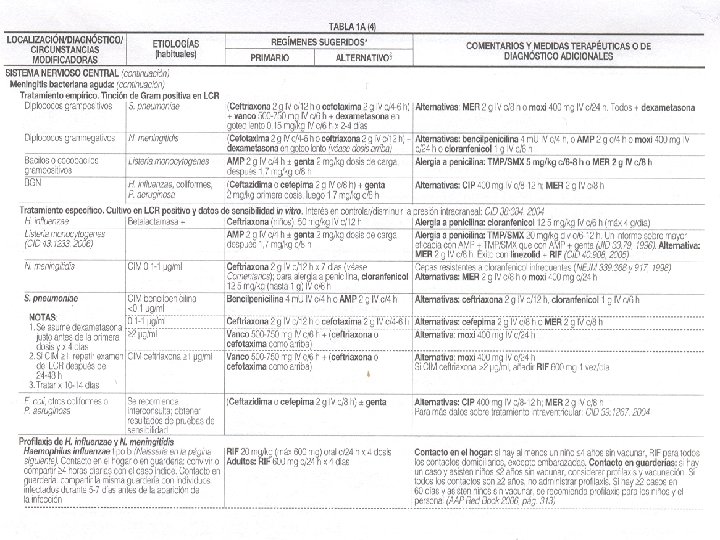 MENINGITIS BACTERIANA PURULENTA (aguda). Laboratorio: • • Tinción de Gram del L. C. R. Cultivo del L. C. R. Hemocultivo. Aglutinación con Latex, (antígenos capsulares). Coaglutinación, (antígenos capsulares). Contrainmunoelectroforesis, (antígenos capsulares). Rx. , P. A. de tórax. Exámenes de rutina.