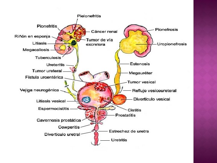 INFECCIÓN URINARIA � Cualquier proceso inflamatorio causado por un microorganismo patógeno localizado en las vías urinarias, frecuentemente provienen de la región perianal. Causa frecuente de morbilidad � 2 da. Infección bacteriana más frecuente en la infancia. � A los 7 años aproximadamente el 8% de las niñas y el 2% de los niños han tenido al menos una infección del tracto urinario. � Su diagnóstico sirve de alerta para la detección a corto plazo de malformaciones del tracto urinario. � Del 30 al 60% de los niños podría tener alguna anormalidad urológica. �