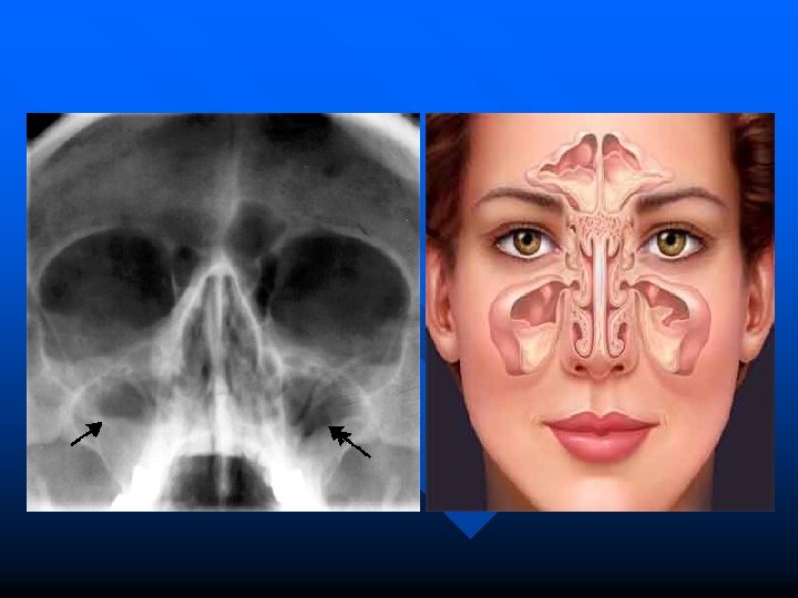 Sinusites Agudas n n n Oclusão do óstio Evoluir para sinusite crônica Agentes causais: – H. influenzae – S. pneumoniae Sintomas: – Dor, febre, rinorréia purulenta, epistaxe Diagnóstico – Exame físico – Rx de face Tratamento – Sintomático: Dor – Descongestionante – Antibiótico