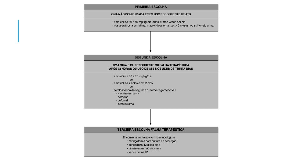 OTITE • Principais agentes: Streptococcus pneumoniae, Haemophillus influenzae e Moraxella catarrhalis. • Quadro clínico: • Avaliar fatores como: a posic a o em que e oferecida a mamadeira, a exposic a o a fumac a de cigarro, irma os com histo ria de otite me dia recorrente, creche, etc. • Obstruc a o nasal ou anomalias craniofaciais que afetam a orelha me dia (fenda palatina, fenda palatina submucosa e Síndrome de Down). • Patologias do nariz como po lipos, desvio de septo e tumores de rinofaringe podem estar associados a otite me dia.