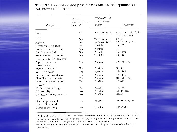 Hepatitis B Virus § § § § Enveloped DNA virus 350 million people chronically infected worldwide Prevalence of chronic infection in high-prevalence areas can be as high as 10 -15% About 80% of liver cancers worldwide are in HBV-infected individuals Those chronically infected have a 40% lifetime risk of developing HCC Major pathways by which HBV infection increases risk for liver cancer are: (1) chronic inflammation (necroinflammatory liver disease) (2) oncogenic proteins (X protein) (3) genomic instability from viral DNA integration 3. 1% of ALL cancers attributed to HBV (4. 9% to HBV and HCV)